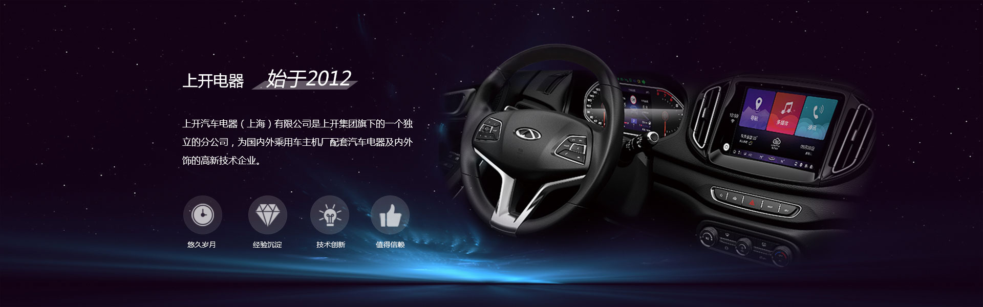 上開汽車電器(上海)有限公司是上開集團旗下的一個獨立的分公司,是由國內(nèi)生產(chǎn)和銷售機電開關、接插件等電器產(chǎn)品的著名廠商——上海永星電子開關有限公司為更好地服務于汽車行業(yè),提高自身的核心競爭力,高薪聘請國內(nèi)外汽車電器類的專業(yè)技術精英及高級管理人才,依托30多年電子開關制作經(jīng)驗,而成立的一家專門為國內(nèi)外乘用車主機廠配套汽車電器及內(nèi)外飾的高新技術企業(yè)。